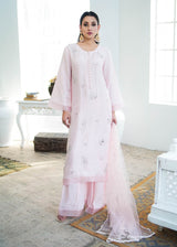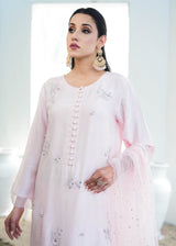 Roohi is a soft powder pink ensemble that speaks the language of quiet luxury. This outfit features delicate embellishments along the neckline and sleeves, adding texture without overwhelming the look. The silhouette is flowy yet structured, offering both comfort and a flattering shape. Crafted in raw silk, the set includes a matching dupatta that adds a light, airy finish to the outfit.