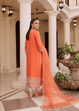 Radiate confidence and charm in Coral, a striking ensemble that exudes warmth and grace. The vivid orange hue is adorned with intricate white embroidery, creating a mesmerizing contrast that captures attention effortlessly.