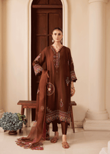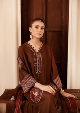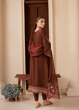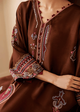 Rendered in a rich chocolate brown hue, Mehr is adorned with exquisite embroidery, evoking an aura of regal charm.